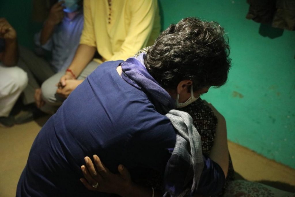 Priyanka Gandhi Vadra with the Hathras gangrape victim's family. Photo: Special arrangement