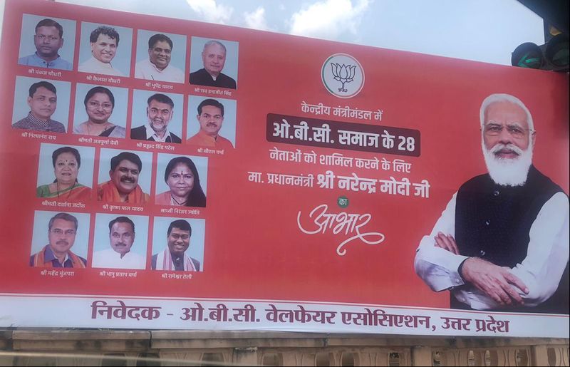 Lucknow: The morning after Prime Minister Narendra Modi expanded his cabinet in Delhi, multiple hoardings came up across the poll-bound state of Uttar Pradesh. They carried photographs of the newly inducted ministers from OBC communities, with the caption, “Our gratitude to the respected PM Narendra Modi for inducting 28 OBC leaders in the Union cabinet.” Though caste has always been a factor while selecting ministers in India, this appears to be the first time that hoardings were erected just to advertise the matter.