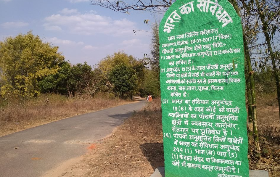 Stones placed as symbols of the Pathalgadi movement. Photo: Neeraj Sinha/The Wire
