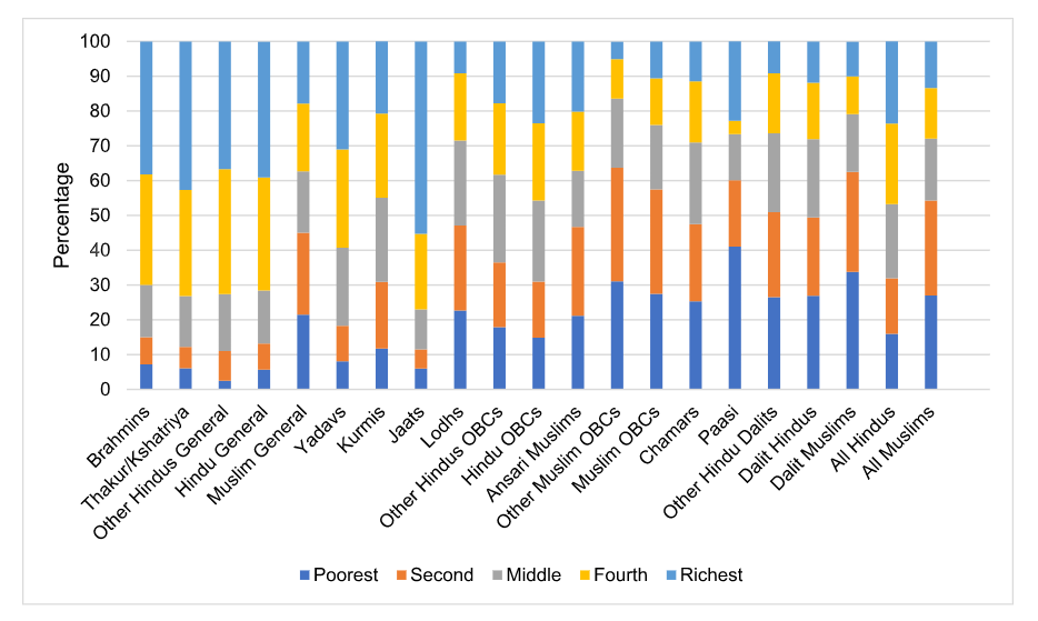 - On the other hand, about 40% of households of Paasi, Dalit Muslims, Other Muslim OBCs, Other Hindu Dalits, Chamars, and Lodhs belong to the poorest wealth quintile.