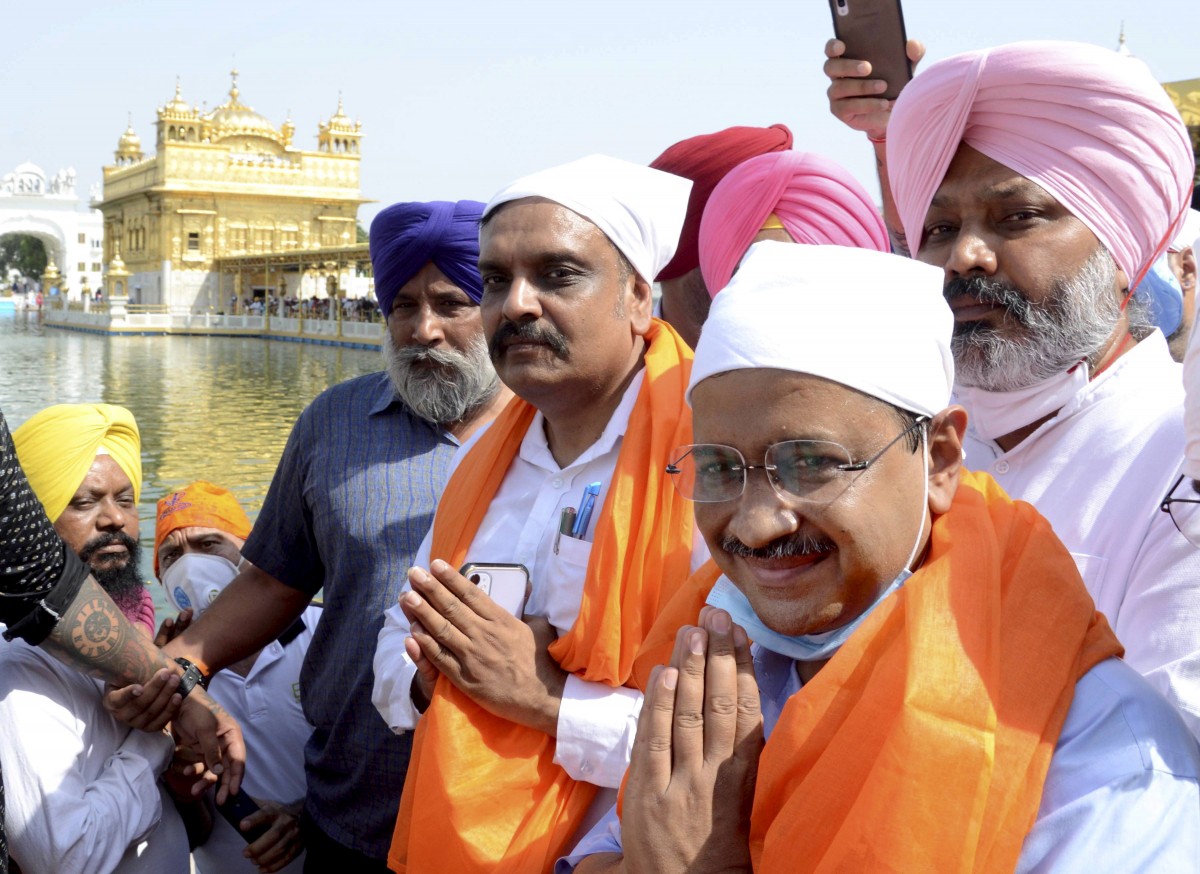 Delhi chief minister Arvind Kejriwal offers prayer at Golden temple in Amritsar, Monday, June 21, 2021. Photo: PTI