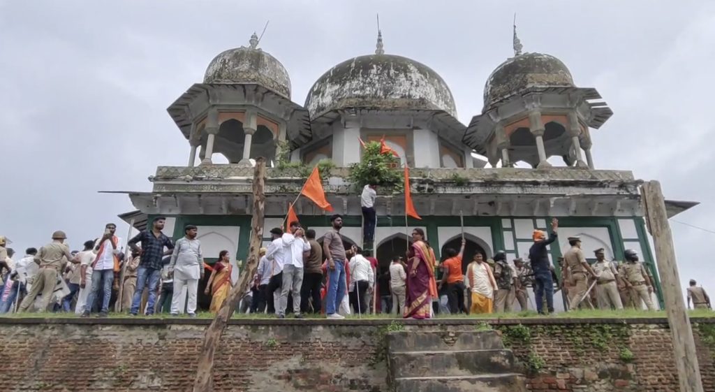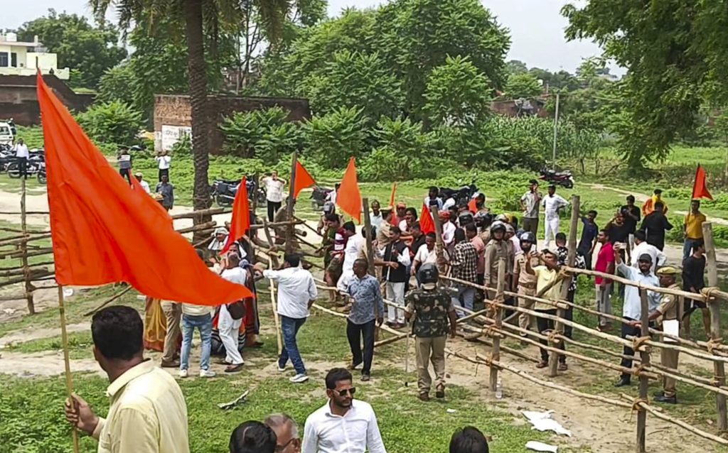 Lucknow: A violent confrontation erupted in Fatehpur on August 11, after a mob from various Hindutva bodies stormed a centuries-old mausoleum in Abu Nagar, hoisted saffron flags on its, performed Hindu rituals inside, and vandalised graves – all in the presence of security forces.