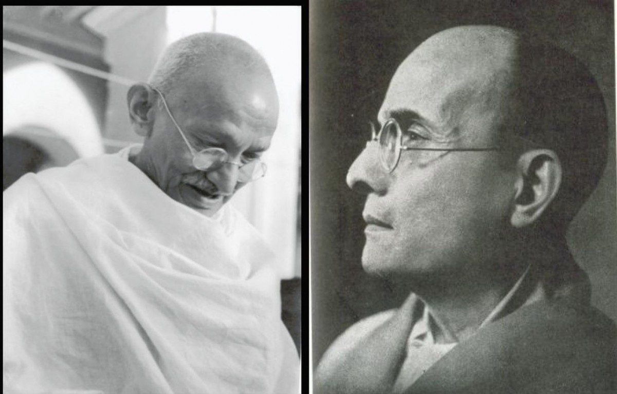 Mahatma Gandhi (left) and V.D. Savarkar (right). Photo: Wikimedia commons/ CC0 1.0