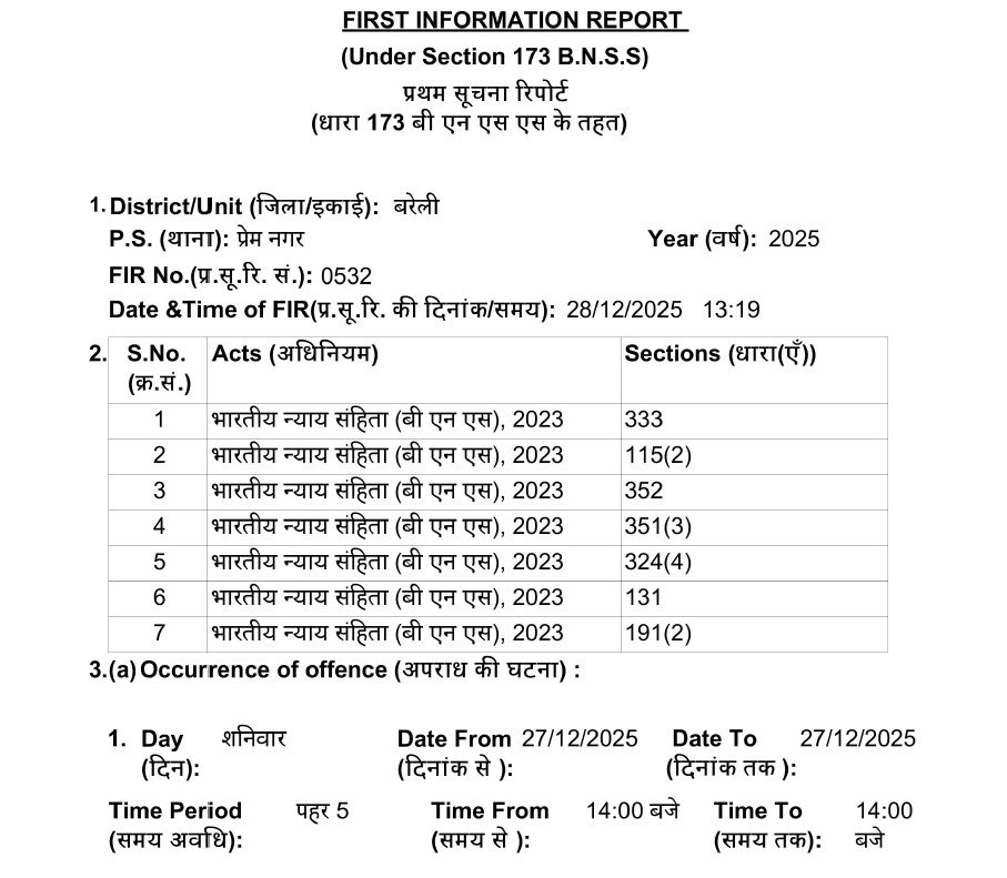 On December 28, 2025, based on the complaint of the café owner Shailendra Gangwar, an FIR under sections related to criminal trespass, assault and physical assault of the Bhartiya Nyaay Sanhita (BNS) was registered against Rishabh Thakur, Deepak Pathak and around 20 unidentified persons.