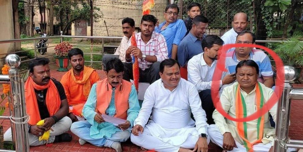Odisha CM Mohan Charan Majhi sitting on dharna with Suresh Chavahanke after not being allowed to meet Dara Singh in jail. Photo: Shared on social media