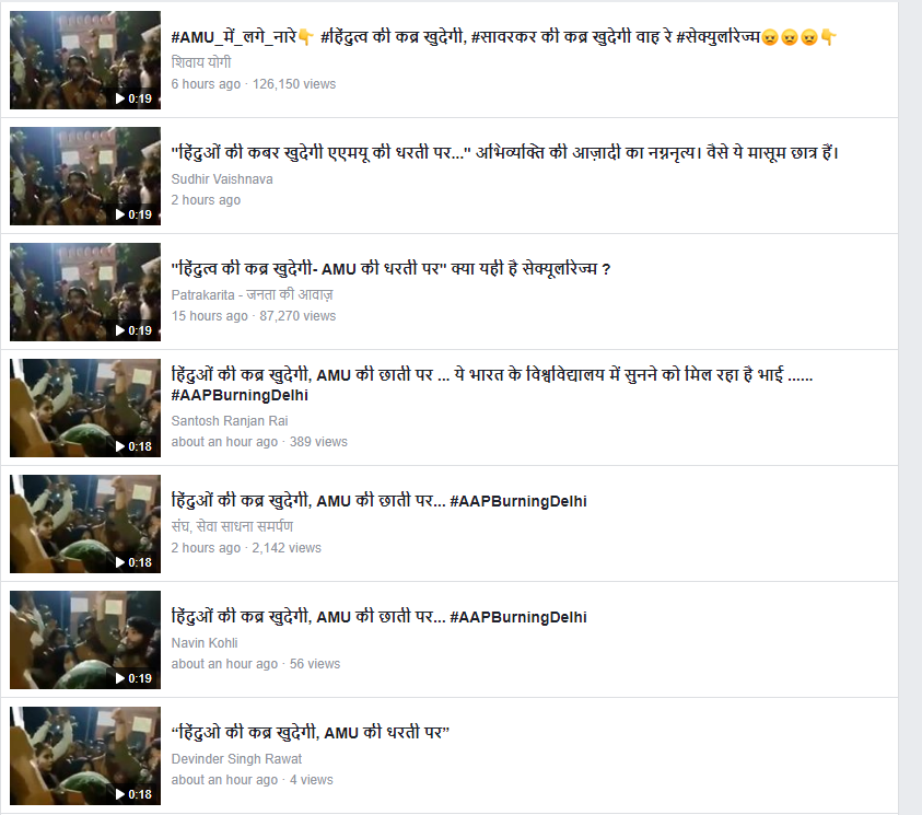 Here, the students can be heard saying, “हिंदुत्व की कब्र खुदेगी, AMU की छाती पर, सावरकर की कब्र खुदेगी, AMU की छाती पर, ये बीजेपी की कब्र खुदेगी, AMU की छाती पर, ब्राह्मणवाद की कब्र खुदेगी, AMU की छाती पर, ये जातीवाद की कब्र. (grave of Hindutva will be dug on the chest of AMU, grave of Savarkar will be dug on the chest of AMU, this BJP’s grave will be dug on the chest of AMU, Brahminism’s grave will be dug on the chest of AMU, Casteism’s grave will be dug -translated)”. It may be noted that this video was uploaded on December 12, 2019.