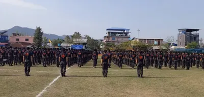 In this image posted by @manipur_police via X on March 21, 2025, security personnel conduct a search operation and area domination in the fringe and vulnerable areas of hill and valley districts. Photo: X/@manipur_police via PTI Photo.