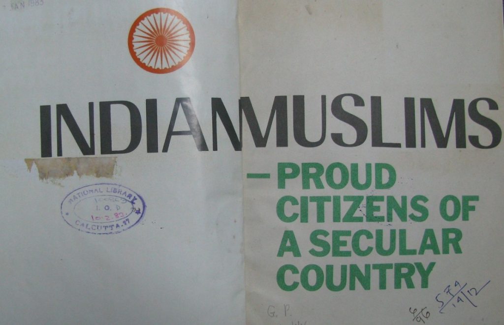 Propaganda pamphlet reads 'Indian Muslims Proud Citizens of a Secular Country', Indian Muslims DAVP New Delhi 1982 at the National Library Kolkata. Photo: Sourav Roy.