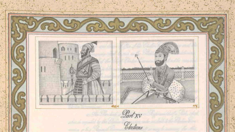 Portrait of Shivaji (left) in the Indian Constitution. Source: World Digital Library.