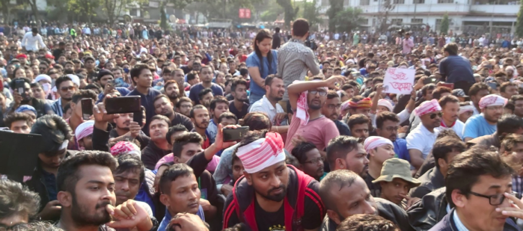 With the spread of the agitation like wildfire, the state administration had resorted to internet and broadband ban across the state and clamped a curfew. However, lakhs of people defied the curfew and came out of their houses to question the government they elected in 2016 as to why they couldn’t pass on their concerns to New Delhi. The BJP in that election won 60 of the 126 seats, for the first time ever due to rousing public response to its poll slogan – jati, mati, bheti (protection of home, hearth and identity).