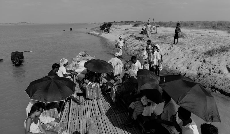People shift their homes on a machine boat due to erosion in Jatradia Char in Barpeta. Photo: Kazi Sharowar Hussain.