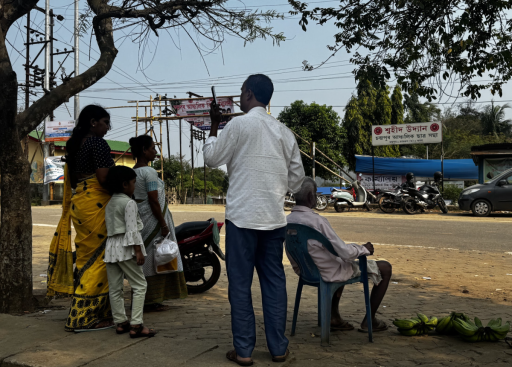 People are seen standing outside the Chandrapur market in the outskirts of Guwahati. Photo: Tamanna Naseer.
