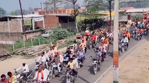 A video screengrab of former Dumariyaganj MLA Raghvendra Pratap Singh's rally which allegedly saw calls for killing Muslims.