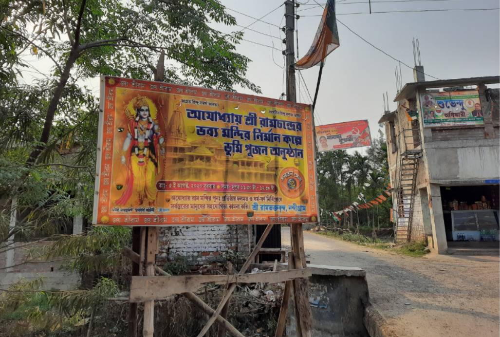 A hoarding in Nandigram inviting people to join the worship of Ram on August 5 to celebrate the laying of the foundation stone of Ram Temple in Ayodhya. Photo: Snigdhendu Bhattacharya