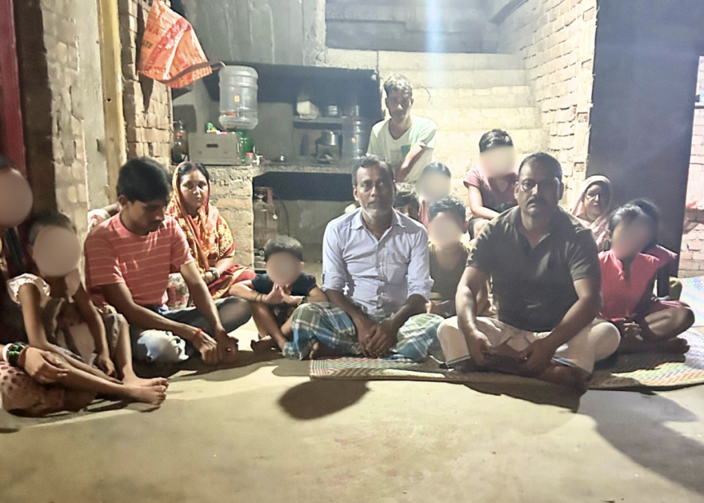 Sujon Sarkar with his family in Bengal. The minors' faces have been blurred in accordance with the law Photo: Arka Deb.