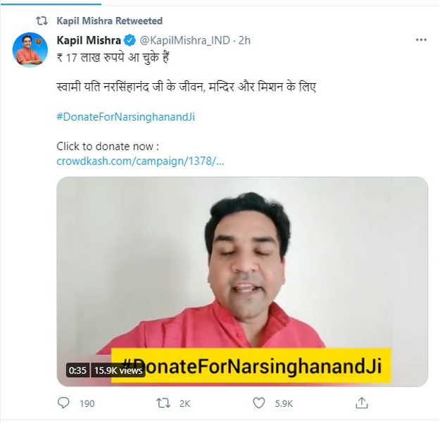 Notably, the trends that support Yati are being promoted by top BJP leaders, especially Kapil Mishra who shares a close relationship with him. Kapil Mishra has now started a donation drive for Narsinghanand’s mission to “remove Islam and Muslims from the face of Earth.”