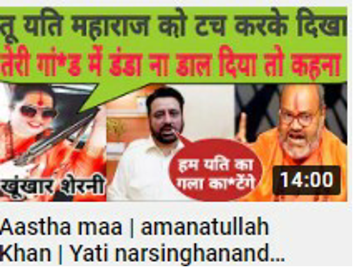 Several hate speeches against Muslims were made at the event. A page called “Hindu Parivar” regularly broadcast live videos of such events. This page was unpublished by YouTube this month after it was found to be in severe violation of YouTube’s hate speech policy. The thumbnails of most of these incendiary videos were literally death threats.