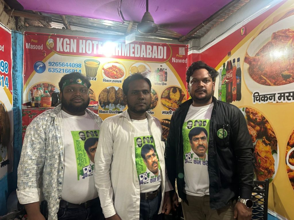 Imtiaz Alam (centre) who had just returned from an AIMIM rally in Bahadurganj. Photo: Sravasti Dasgupta.