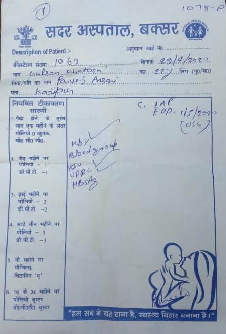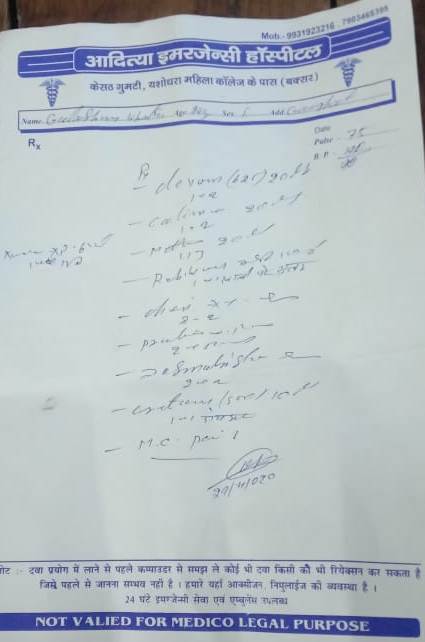 Khatoon’s patient slip issued at Sadar Hospital, Buxar on April 29, 2020 .