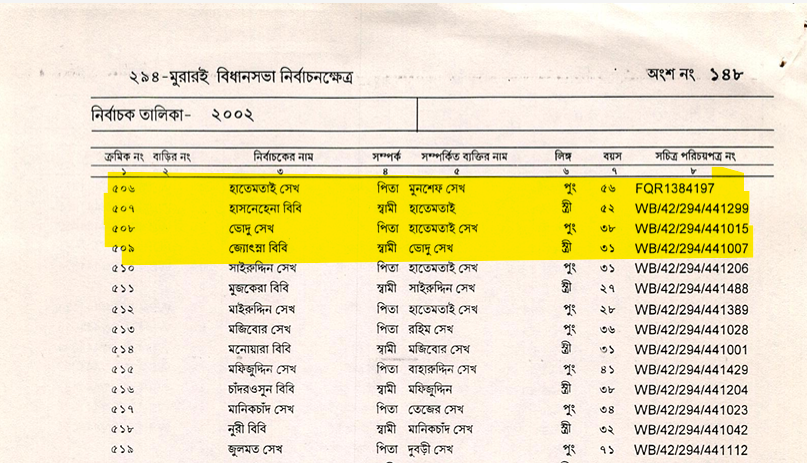 Material submitted to the courts suggest that Khatun, and at least one other woman sent to Bangladesh with her, have longstanding and well-documented links to India. The names of her parents also appear in the 2002 electoral roll, indicating that they were enrolled as voters more than two decades ago.