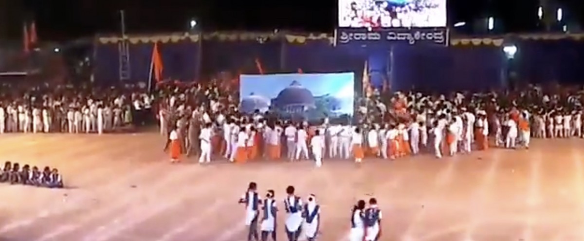 This was the School Day function at Sri Rama Vidya Kendra High School located in Kalladka, Dakshina Kannada district, Karnataka. On December 15, 2019 – around a month after the Supreme Court ruling which called the demolition of the Babri Masjid a ‘violation of law’ – the students of this school were made to enact the demolition. The school is owned by a powerful RSS leader from Karnataka, Kalladka Prabhakar Bhat, who defended the play in front of the media: “It is not a mosque. It is just a building. It is a historical event that we are depicting… Who are Babur's children? We are not against Muslims. We are against terrorists. The play was done to show historical events and what is the problem with it.” Bhat is also known as one of the political mentors of Prime Minister Narendra Modi.