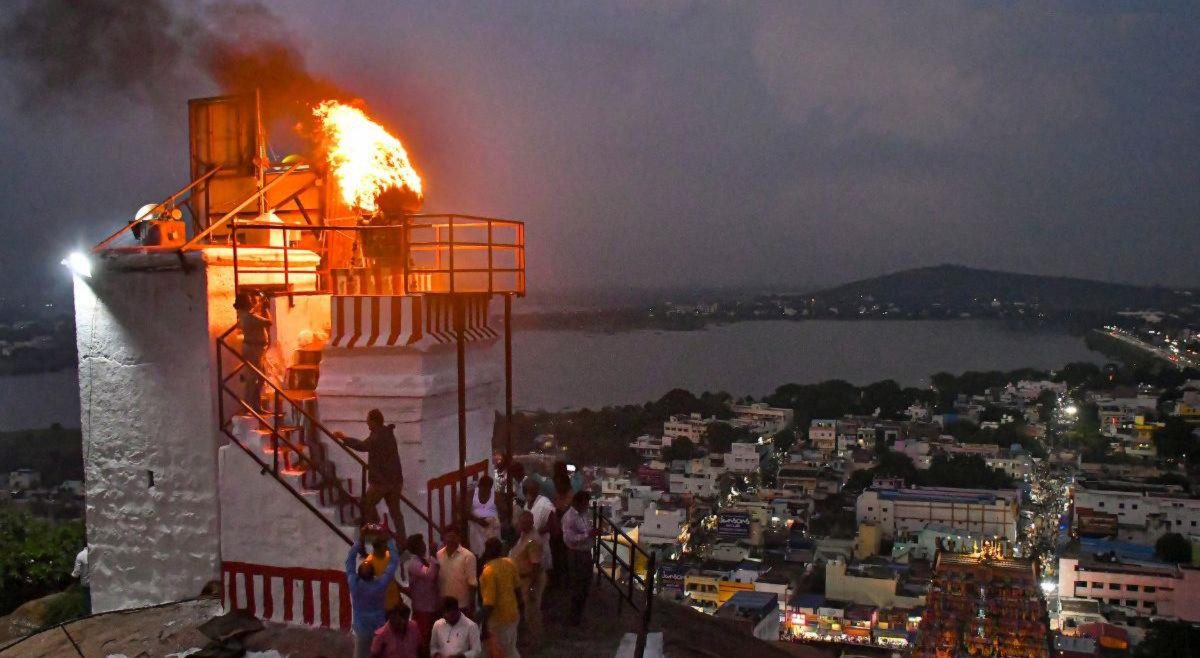 Solaikannan argues that the pillar is the agamic and traditional spot for the lamp. Agama rules, he says, require the lamp to be lit on the hilltop deepa sthambam. The Pillaiyar temple site, he claims, is meant for lamps dedicated to the dead, not for the main Karthigai Deepam.