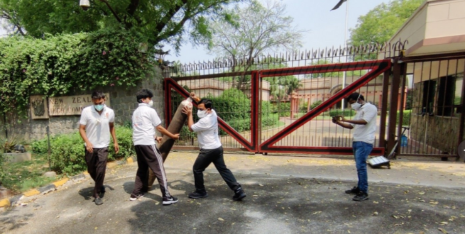 The Youth Congress reached New Zealand High Commission with oxygen cylinders. Photo: Twitter@srinivasiyc