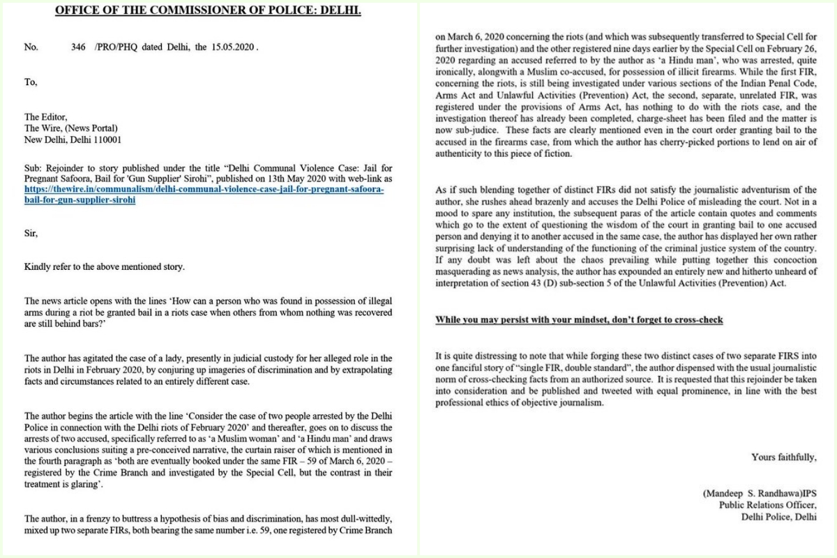 Note (May 15, 6:05 pm): Though both Safoora Zargar and Manish Sirohi are being proceeded against under FIR 59/2020, which is being handled by the Delhi Police Special Cell, there are in fact two FIRs of the same number which the Special Cell is handling. The first is dated February 27, 2020, and relates only to Manish Sirohi, and the second is dated March 6, which relates to Safoora and some others. In an earlier version of this story, both FIRs bearing the same number were erroneously treated as one.