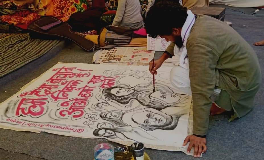 Talking about art, Vishal says, “It’s the best way to express dissent. It’s non-violent and hits your conscience deeply. Making art does not amount to violence.” Kumar’s artwork was focused on slogans and imagery. “For example, we made a painting of Ashfaqulla Khan and Ram Prasad Bismil – both freedom fighters who were good friends to show brotherhood between the Hindu and Muslim communities.”