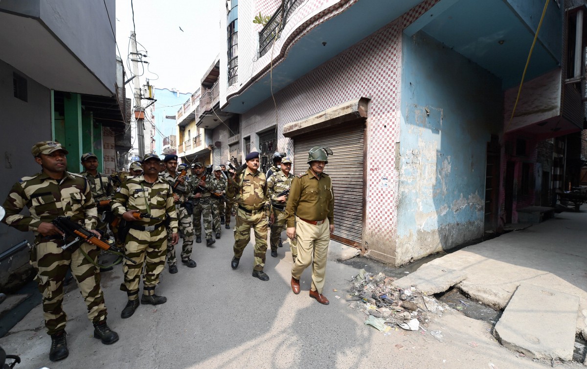 Police in North East Delhi in the aftermath of the riots. Photo: PTI/Manvendar Vashisht