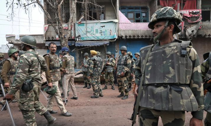 Police stand guard in a riot affected area in New Delhi, India, February 28, 2020. Photo: Reuters/Rupak De Chowdhuri