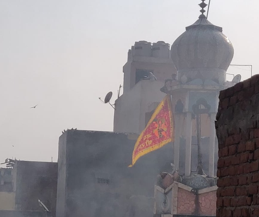 New Delhi: On Tuesday, at Ashok Nagar, a mosque was burning. A saffron coloured flag featuring the Hindu god Hanuman had been hoisted atop its minaret, with Muslim houses behind the mosque burnt. The green panes of the mosque were broken, charred, jagged edges burnt black as smoke poured out. An air conditioning unit was still on fire.