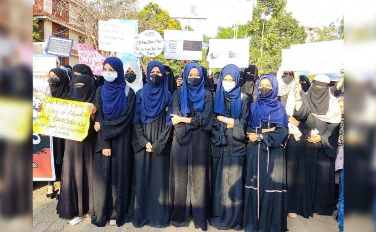 A view of the Muslim women’s pro-hijab protest in Udupi, Karnataka, on February 07, 2022. Photo: Muhammed Sabith