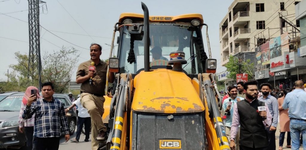 A bulldozer at Shaheen Bagh. Photo: Sumedha Pal