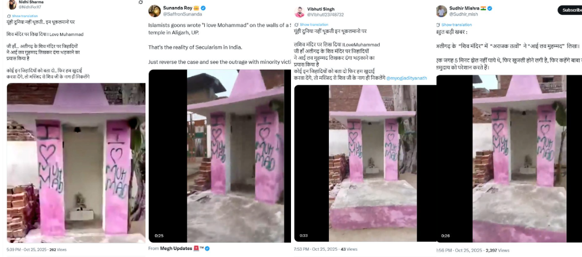 Thus, it was actually some Hindu youths who sprayed walls of Hindu temples in two villages of Uttar Pradesh's Aligarh with different versions of the ‘I love Muhammed’ graffiti.