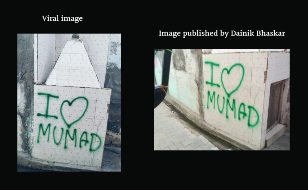 Visuals with the words “I love Muhmad” and “I love Mamud” spray-painted on the walls of two temples are viral on social media. In one of the videos showing the graffiti, the person recording the video is heard saying that the visuals are from a Shiv temple in the Bulak Garhi village in Uttar Pradesh.