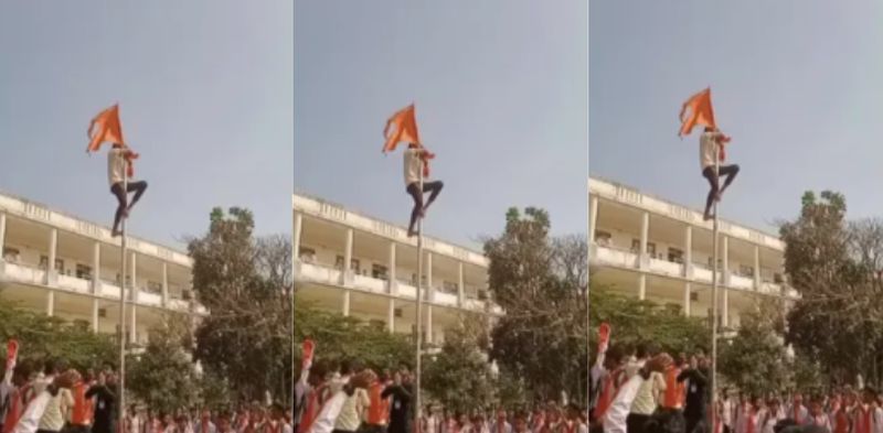 It must be noted that in the viral videos of the incident, the student cannot be seen removing the national flag. (1, 2) The videos were shot after he had climbed the flagpost and was in the middle of hoisting the saffron flag. This itself raises doubts about the claim that the national flag was replaced since video evidence of the same is lacking.