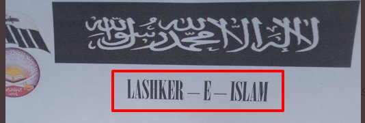 In both the flags (the one in the letter shared by Khuhro and the one in the AFP image), the Urdu text in the middle says 'Lashkar-e-Islam'.