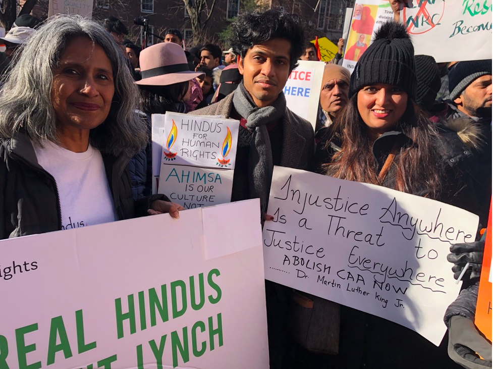 Sunita with her son Gautama and a friend at an anti-CAA rally in NYC, in January 2020. Photo: Special arrangement