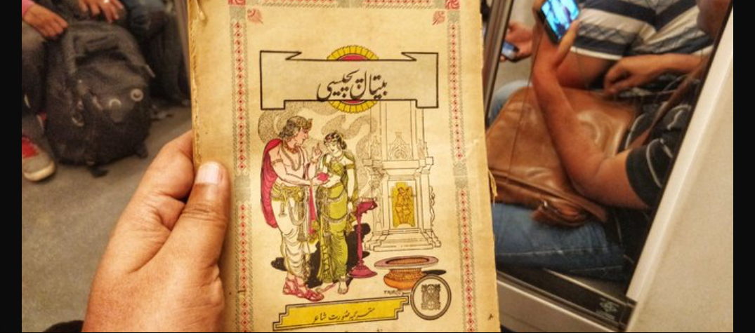 A commuter reading the Urdu version of 'Baital Pachisi' in Delhi Metro. Photo: Mahtab Alam