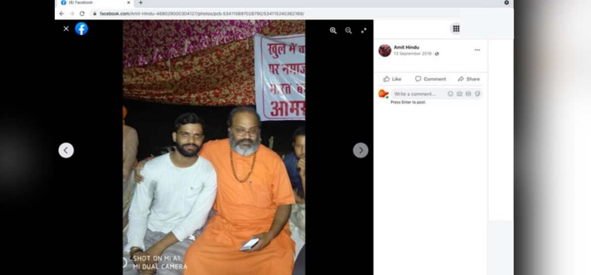 According to his Facebook profile (which has now been locked), Amit Hindu appears to be close to Yati Narsinghanand Saraswati, another Hindutva icon who rose to prominence with his hate speeches. On his Facebook profile, there are a number of photographs where is seen photographed with Narsinghanand.