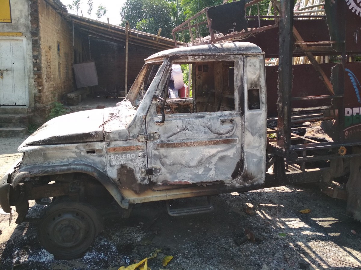 A goods carrier gutted by fire, Telinipara. Photo: Himadri Ghosh