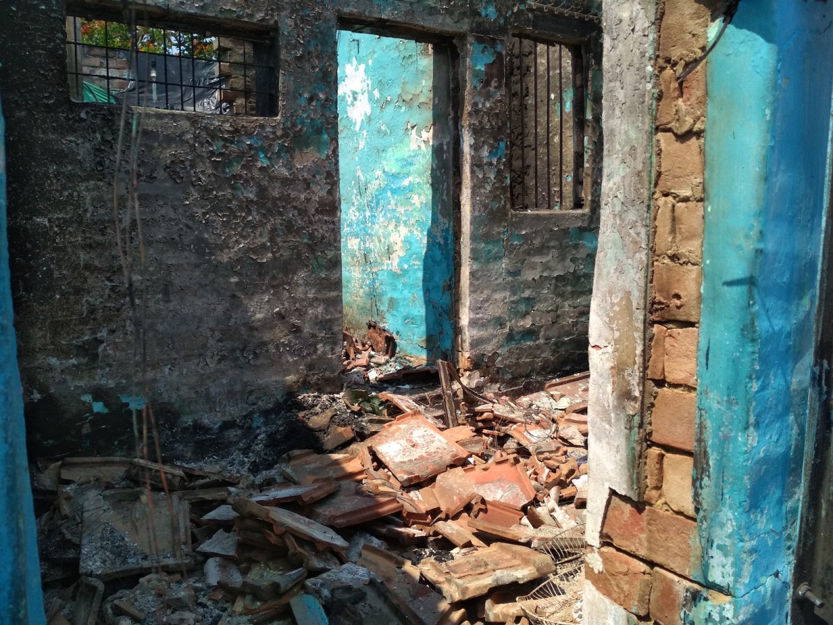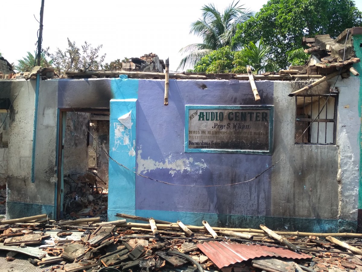We then walked towards the Gondalpara mill from Dinemardanga junction, and found a series of Muslim-occupied homes with broken doors, melted television cables and burnt, exposed electric wires. Some of the houses’ roofs and walls had fallen as gas cylinders had burst inside these small houses.
