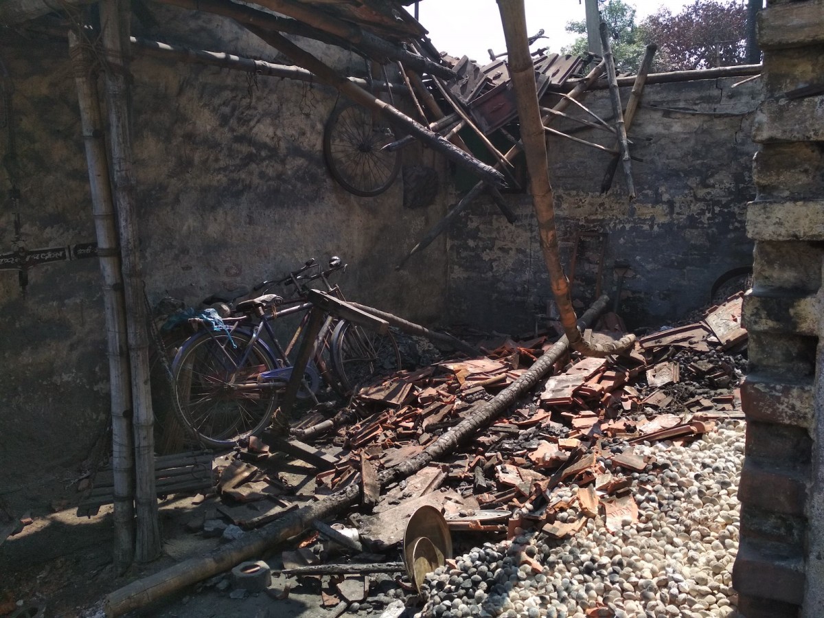 A house completely demolished by attackers, Telinipara. Photo: Himadri Ghosh.