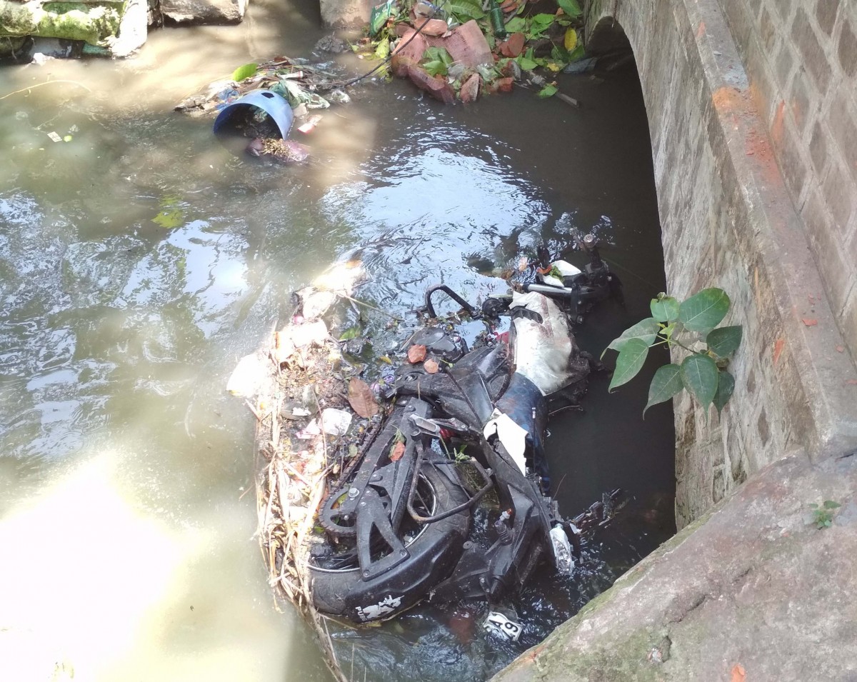From Gondalpara, we went next to Ferry Ghat street, which forms part of ward 9 of Bhadreswar municipality. To reach it, one has to cross a narrow culvert which connects Dinemardanga junction to the masjid road. We found gas cylinders and a motorcycle lying in the drain beneath the culvert.