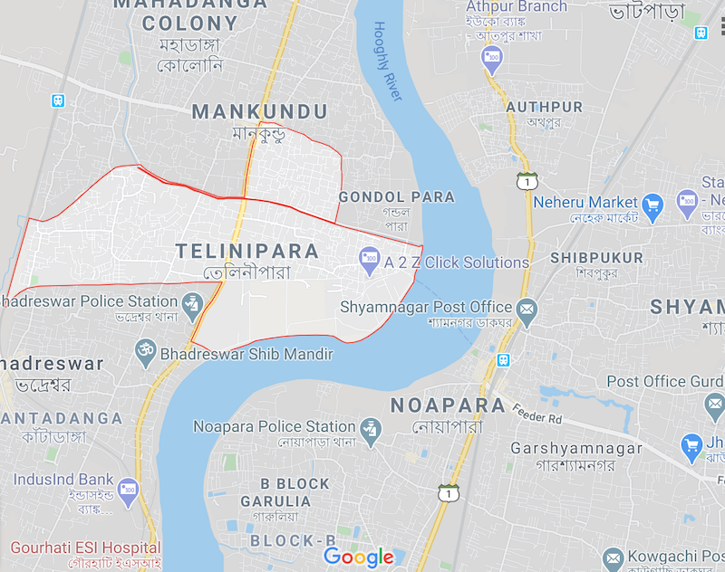 Map of Telinipara in Hooghly district, West Bengal. Credit: Google Maps