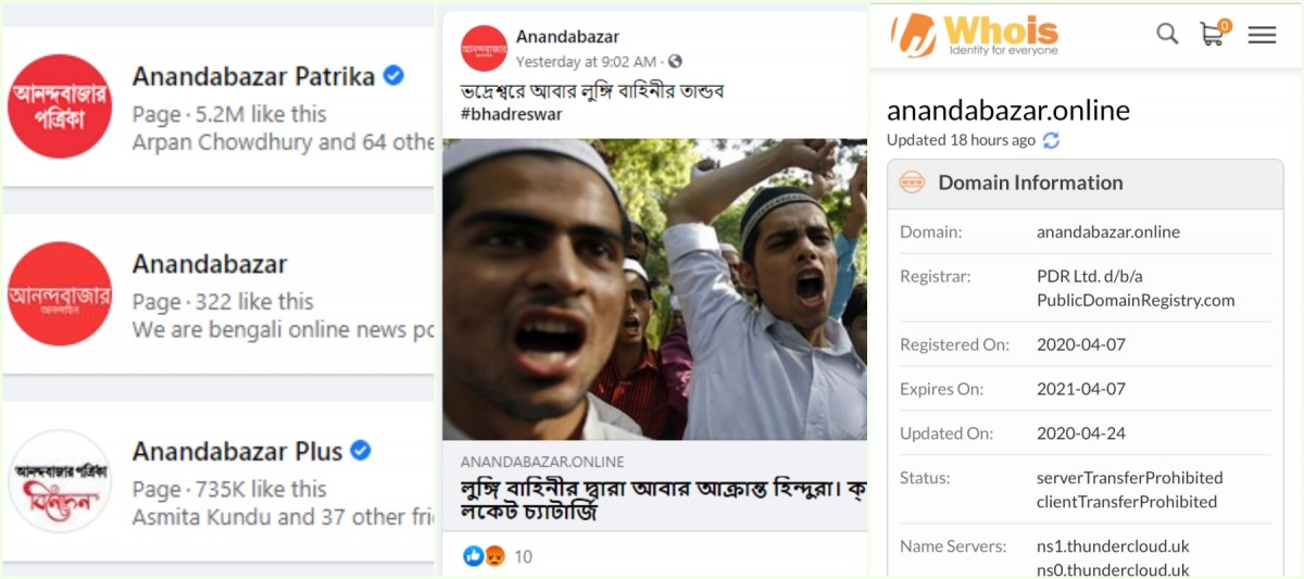 The Wire also found that a fake news website purporting to belong to Anandabazar Patrika - the largest circulated newspaper in Bengal - was spreading false and inflammatory news about the Telinipara incident. The ‘news’ portal, which became active on April 7, has subsequently been taken down.