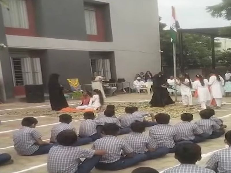The burqa-clad students were engrossed in carrying out the script and kept the skit going. However, as the video reached the parents, a huge crowd showed up at the school demanding answers from the administration.