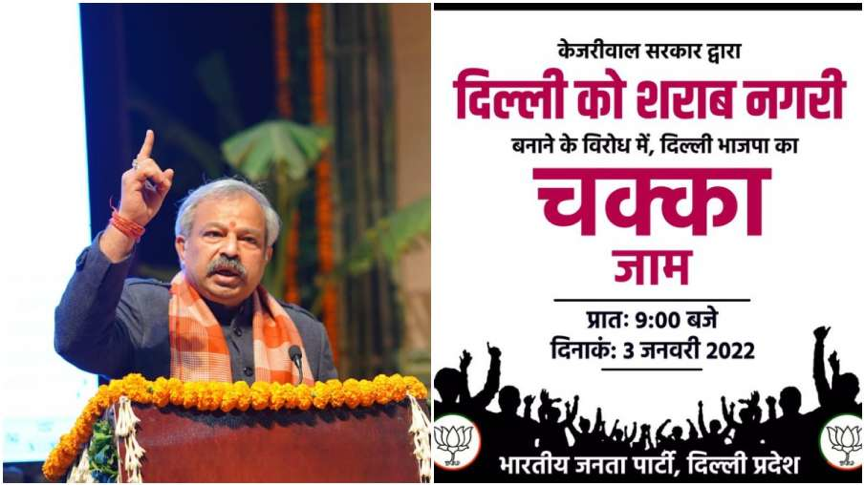 BJP poster calling for a 'chakka jam' in Delhi. Januay 3, 2022.