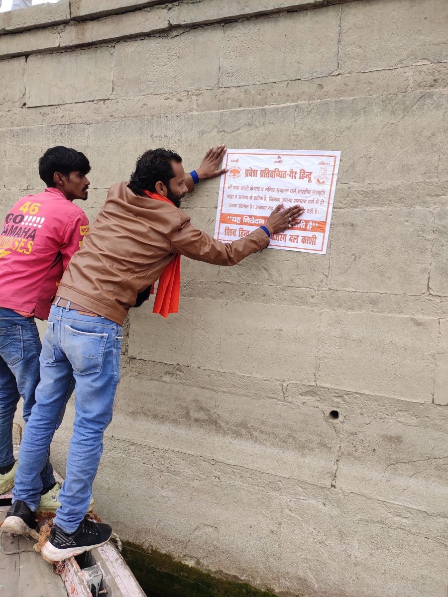 Lucknow: Alleged members of two right-wing Hindu groups, the Vishwa Hindu Parishad (VHP) and Bajrang Dal, have been putting up posters around the ghats of Varanasi that read, "Non-Hindus are prohibited from visiting the Ganga's bank in Varanasi." Leaders of these groups also shared photos of themselves putting up these posters on social media.
